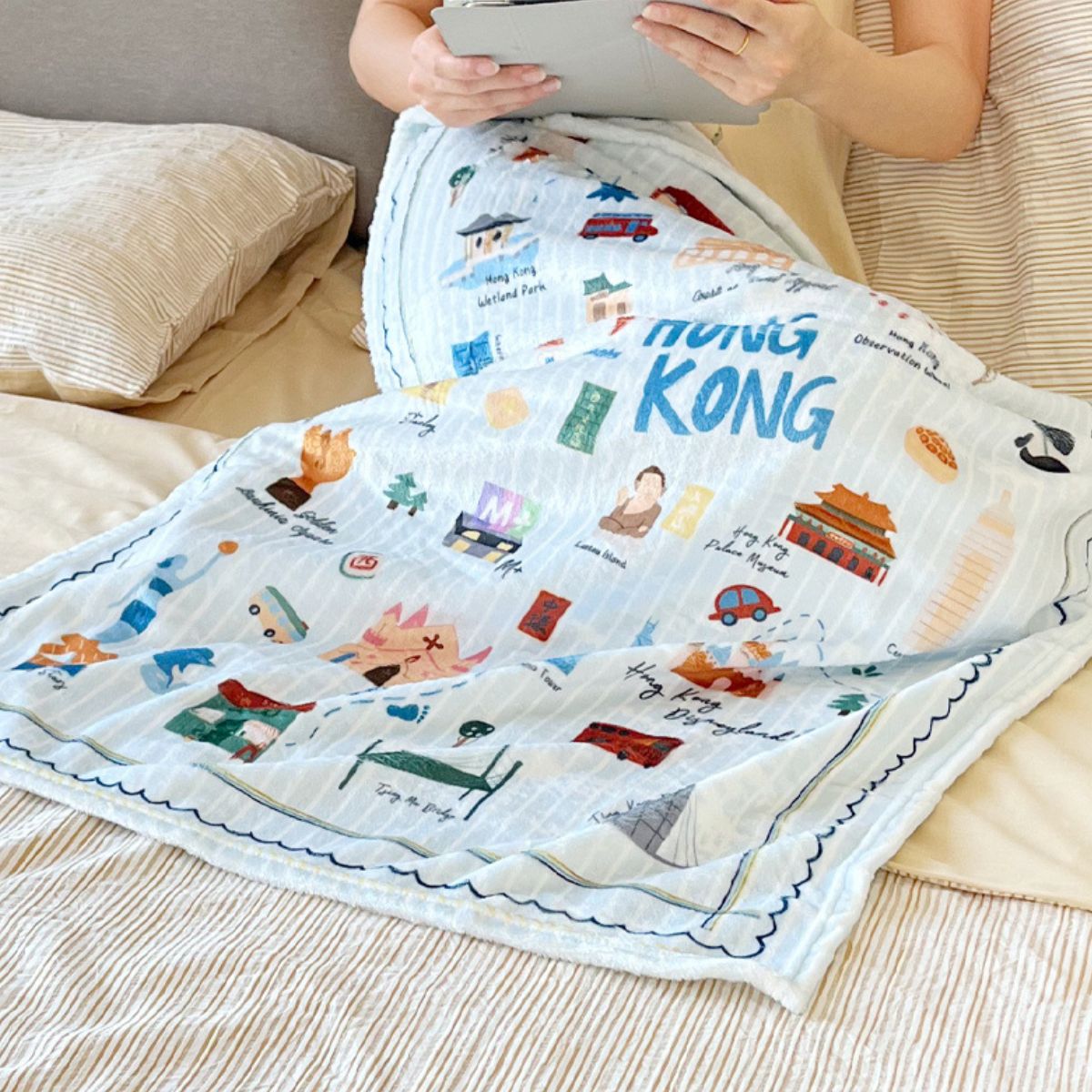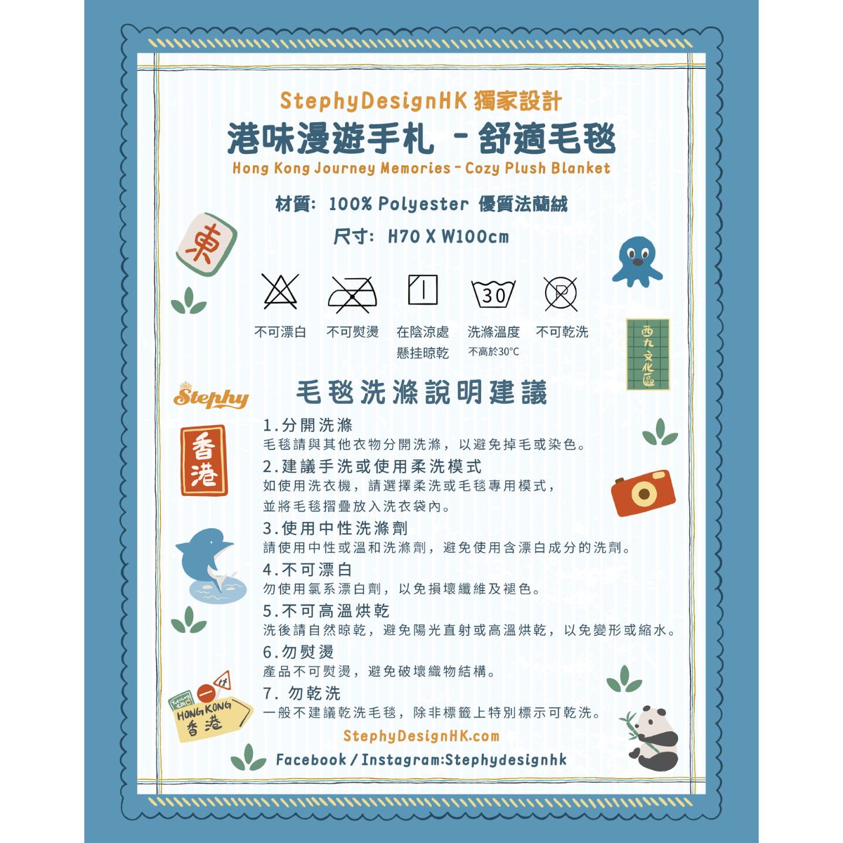 特色: 獨家香港插畫, 手感柔軟輕型, 長效保暖.