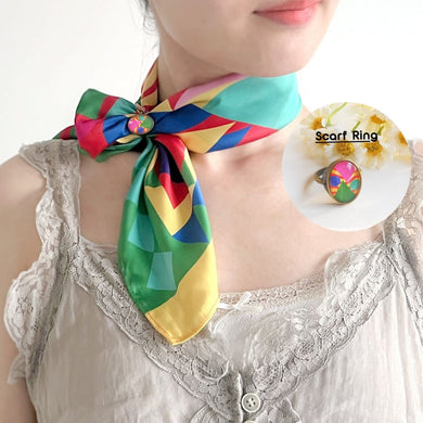Vintage Floral Scarf + Gold-Plated Pure Copper Triple-Ring Scarf Buckle Luxury Gift Set