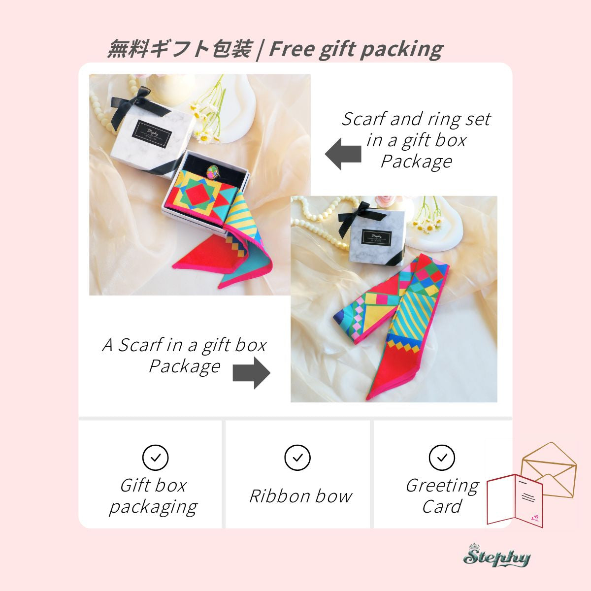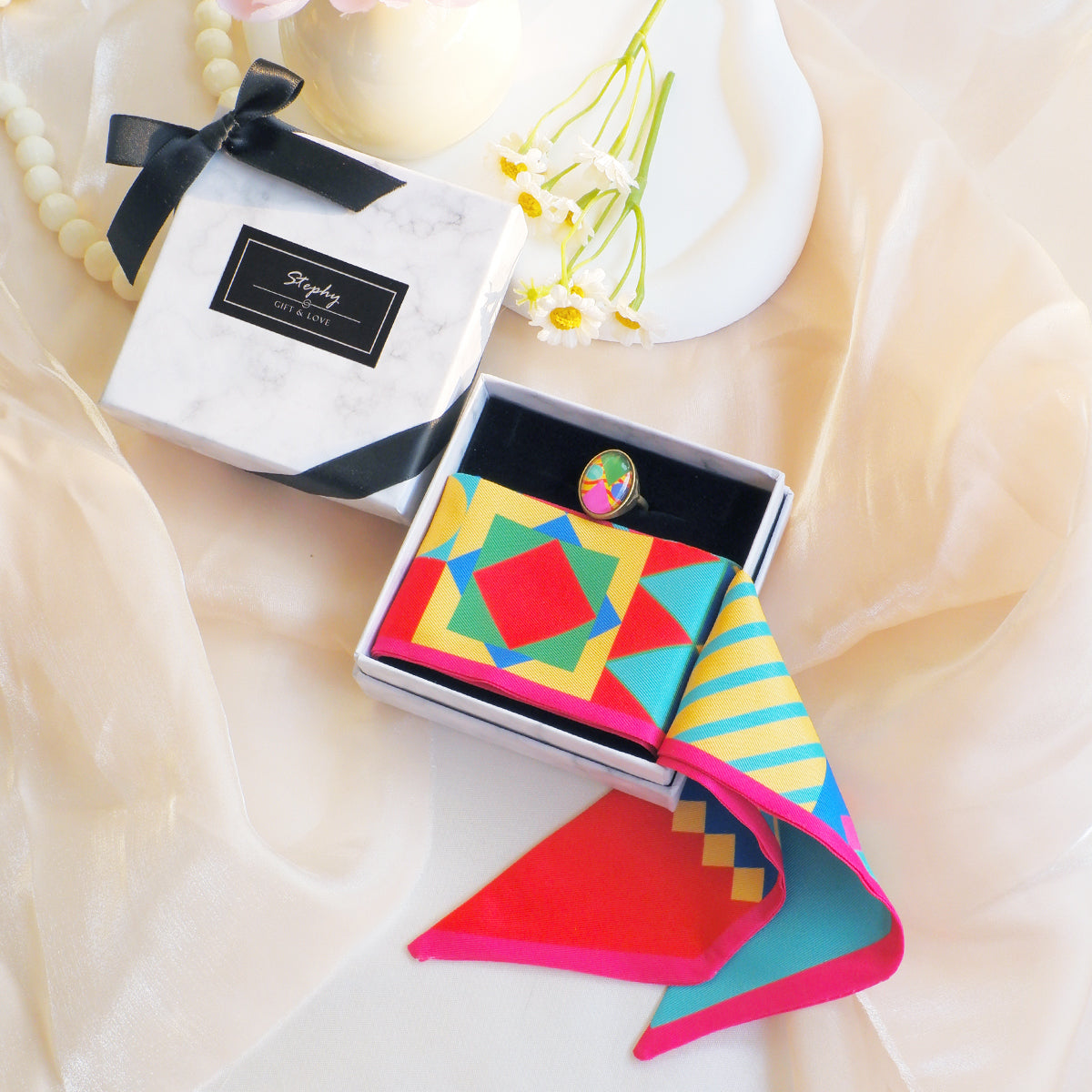 2) 幾何圖長絲巾禮盒(含絲巾扣)